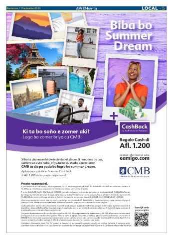 E promocion aki ta valido te cu 30 di september, 2025. Prestamo personal “BIBA BO SUMMER DREAM” tin un interes efectivo di