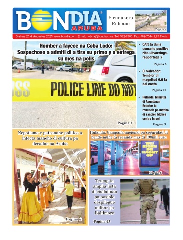 Dialuna 25 di Augustus 2025 www.bondia.com Email: noticia@bondia.com Tel: 582-7800 Fax: 582-7044 1,75 Florin