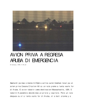 di Aruba. E av ion tabat in como dest inac ion Massachset ts , USA. E