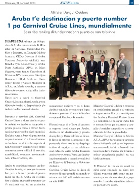 to noticia cu Aruba a conquista e Ehecutivonan di e linea di crucero e mesun forma pa mantene y am-