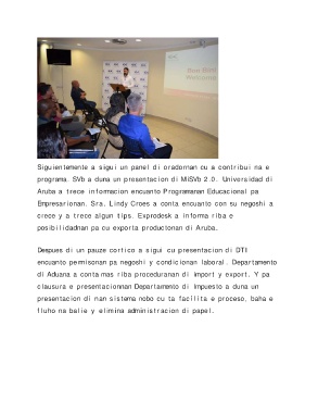 Aruba a t rece in f ormacion encuanto Programanan Educac iona l pa