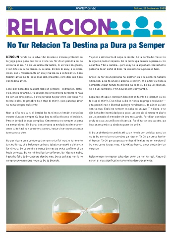 hasta bo felicidad—pasobra den bo mes, bo sa cu kisas nan lo no Relacionnan no mester caba den dolor pa nan ta real. Algun di