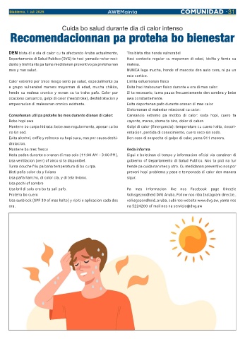 empeoracion di malesanan cronico existente. Evita deportenan pafo durante oranan di mas calor