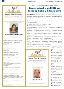 Cu profundo tristesa nos ta anuncia fayesimento di nos For di un investigacion preliminar cu polis a haci na e sitio, e victima