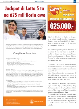 • A minimum of 5 years compliance experience or relevant experience in a fi nancial Lotto, e loteria di Aruba tin ocho diferente