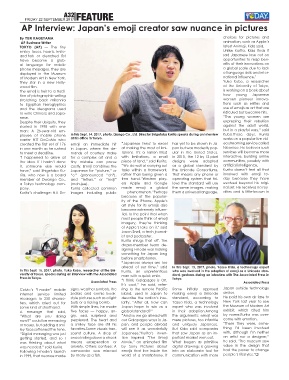 In this Sept. 15, 2017, photo, Yuka Kubo, researcher at the Uni- Kurita, an unpretentious who was involved in the adoption of emoji as a Unicode stan-