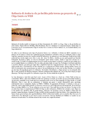 Refineria di Aruba ta cla pa facilita pida tereno pa proyecto di