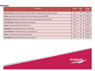 Diario: Aruba bank a haci donacion di 50 cuminda cayente atraves di FPNO Color 100 2.050,00