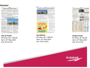 Newspaper: Solo di Pueblo Awe Mainta Amigoe Aruba PR Value: Afl. 1.055,00 PR Value: Afl. 1.085,00 PR Value: Afl. 545,00 th Date: 16 May,2020 Date: 16 May,2020 Date: 16 May,2020 th th Size: 85 Cm/Col Size: 100 Cm/Col Size: 55 Cm/Col