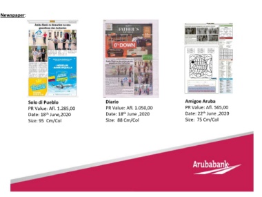 Newspaper: Solo di Pueblo Diario Amigoe Aruba PR Value: Afl. 1.285,00 PR Value: Afl. 1.050,00 PR Value: Afl. 565,00 th th Date: 18 June,2020 Date: 18 June ,2020 Date: 22 June ,2020 th Size: 95 Cm/Col Size: 88 Cm/Col Size: 75 Cm/Col