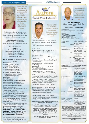 + Ambrosio Maduro y famia †Bernadino “Didi” Thiel y famia †Antonio Gomes