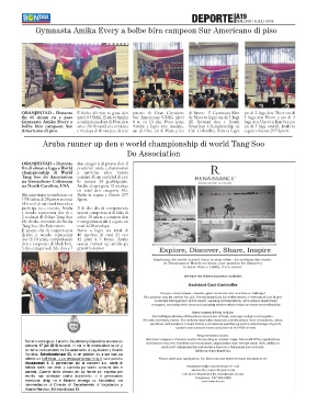 ORANJESTAD - Durante E biaha aki nan ta gana den puesto di Gran Campeon di Brons. E Gymnasta Kim un di 2 luga den Floor un di