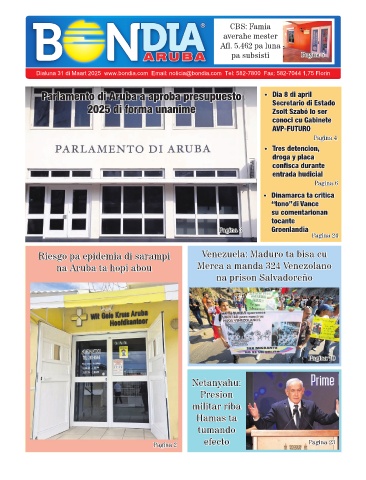 Dialuna 31 di Maart 2025 www.bondia.com Email: noticia@bondia.com Tel: 582-7800 Fax: 582-7044 1,75 Florin