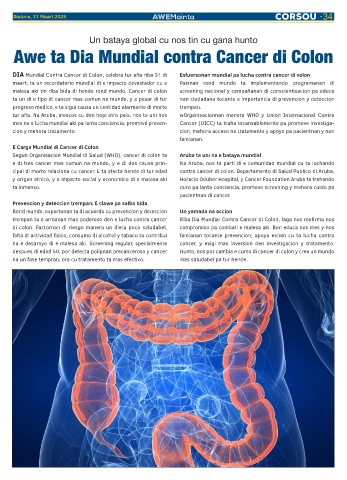 DIA Mundial Contra Cancer di Colon, celebra tur aña riba 31 di Esfuersonan mundial pa lucha contra cancer di volon