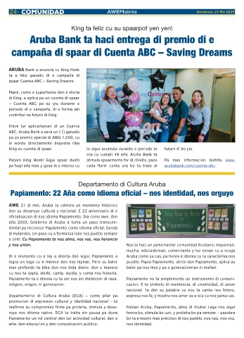 campaña di spaar di Cuenta ABC – Saving Dreams