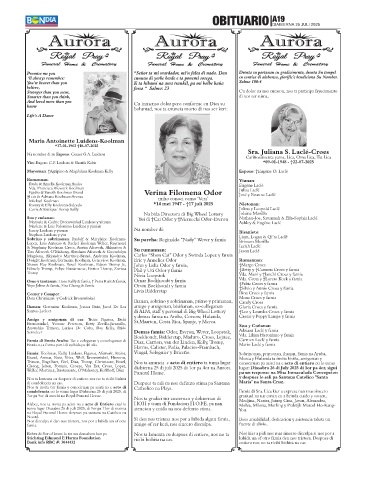 condolencia cu lo tuma lugar Diabierna 25 di juli 2025, di Famia di Sra. Lica kier a expresa nan mas sincero