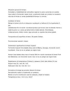 den Bahamas y ta moviendo noord. Jose no ta un peliger pa region local.