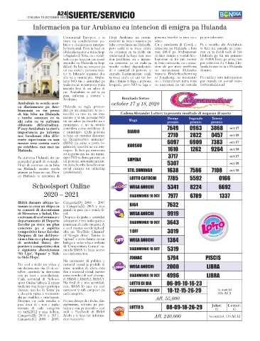 pasa door di e test e miho ciplinanan, rekisito pa par- 08-09-18-26-29 Joker: Letter: