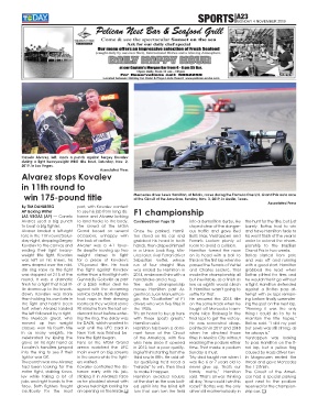 Alvarez used a big punch to land hooks to the body. Continued from Page 18 into a demolition derby. He the hunt for the title, but just