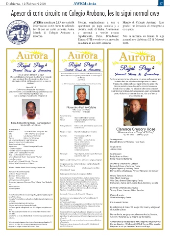 februari 2021 for di 2’or pa 4’or na Aurora Funeral Home Nos ta lamenta cu despeus di entieronosNO ricibibishita di Home, diasabra 13 Februari 2021 di 9’or pa 11’or mainta.