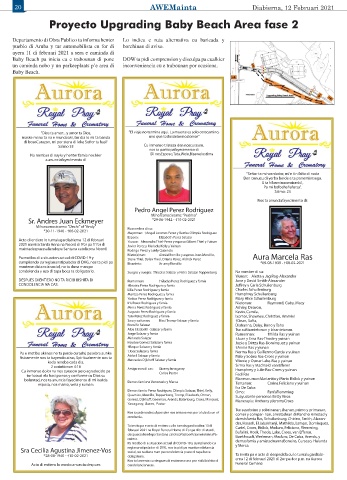 Nos ta lamenta cu despues di entieronos no por ricibibishita di erna 12 di februari 2021 di 2or pa 4or p.m. na Aurora