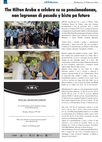 Monday, February 15 , 2021 cu e ta, cu Aruba asina popular manera cu e ta, danki