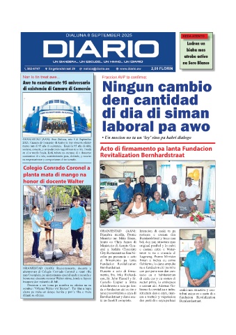 ORANJESTAD (AAN): Awe Dialuna, esta 8 di September