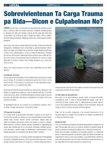 sexual ta kita autonomia di curpa di e sobrevivientenan den e ta cana liber, tin un sobreviviente cu nunca lo ta.