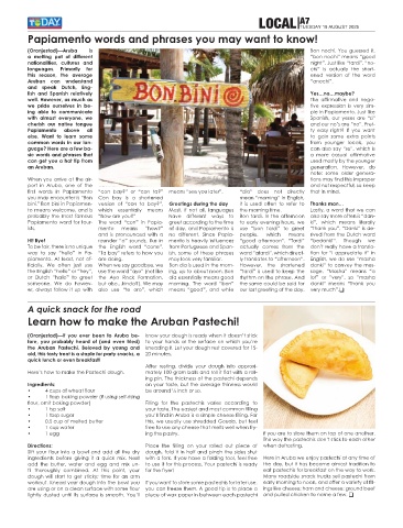 (Oranjestad)—If you ever been to Aruba be- know your dough is ready when it doesn’t stick