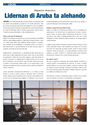tinio constante y acusacionnan vago birando noticia principal, Pa stop e migracion silencioso aki, Aruba mester re-evalua su