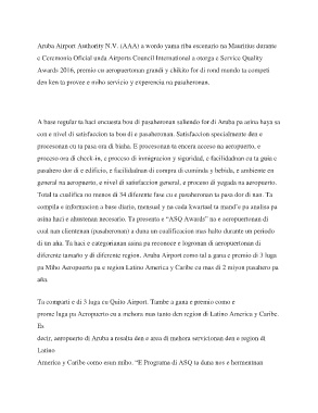 con e nivel di satisfaccion ta bou di e pasaheronan. Satisfaccion specialmente den e