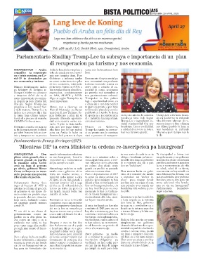 ta tuma luga ultimo tempo gun Gobierno e plan aki ta di aporta na e reconstruccion cion y cu turismo lo cuminsa Tromp-Lee a termina bisan-