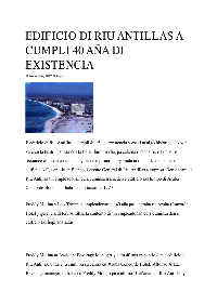 E edificio di Riu Antillas a cumpli 40 aña di existencia y esaki ta algo historico. “Nos ta
