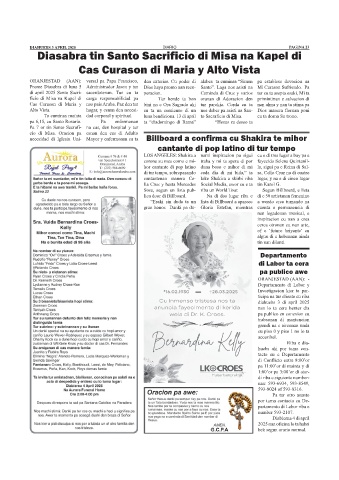 Ta cuminsa mainta dad corporal y spiritual. luna bendiciona. 13 di april to Sacraficio di Misa. cu ta dorna Su trono.