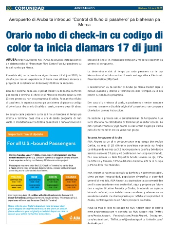 ARUBA Airport Authority N.V. (AAA), ta anuncia introduccion di proceso di check-in, reduci aglomeracion y mehora e experiencia