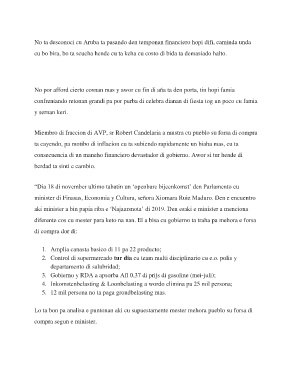 No ta desconoci cu Aruba ta pasando den temponan financiero hopi difi, caminda unda