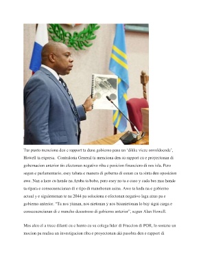 Howell ta expresa. Contraloria General ta menciona den su rapport cu e proyectonan di