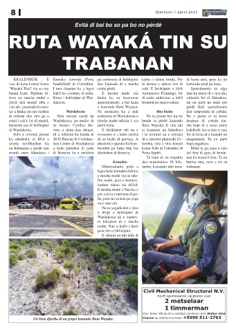 hasiendo uso di helikòpter su bosero Cynthia De- pèrdí kaba. Ruta Wayaká. E ruta aki sha hopi di e mata yamá