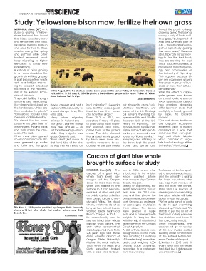 When more bison grazed graze, Geremia said. that grasses heavily grazed sure of nutritional quality." ing," said Mark Hebble-