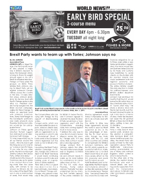 us," Johnson told ITV News. Launching the Brexit Party's Johnson rejects the offer, the EU, which currently ac- traditionally Labour-sup-