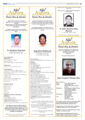 participa fayecimento di nos ruman, tanta, tanta Sr. Adiel Anselmo Diaz