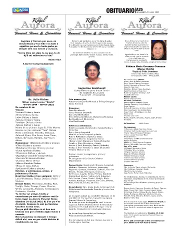 tuma lugar na Aurora Funeral Home juli 2021 di 7’or pa 9’or di anochi na Aurora Habibe, Olive, Wix.