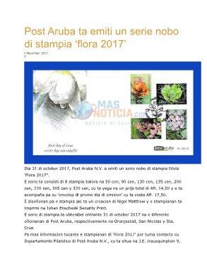 Dia 31 di october 2017, Post Aruba N.V. a emiti un serie nobo di stampia titula
