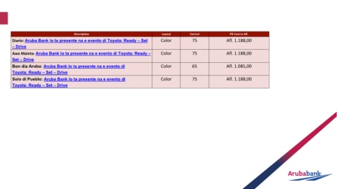 Awe Mainta: Aruba Bank lo ta presente na e evento di Toyota: Ready – Color 75 Afl. 1.188,00