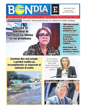 Diahuebs 1 di Februari 2024 www.bondia.com Email: noticia@bondia.com Tel: 582-7800 Fax: 582-7044 1,75 Florin