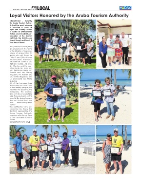 Loyal Visitors Honored by the Aruba Tourism Authority
