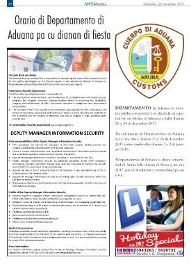 DEPUTY MANAGER INFORMATION SECURITY Tur oficinanan di Departamento di Aduana