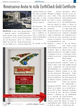 aña aki Renaissance presa cu continua- Gold Certificate. ticanan na beneficio eficio di medioambi-