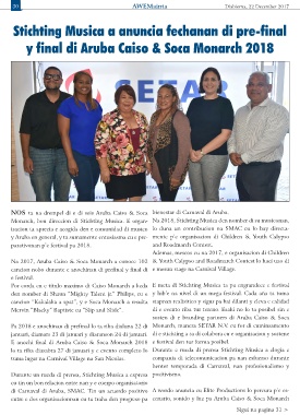 y Aruba en general, y ta sumamente entusiasma cu e pre- mente p’e organisacion di Children & Youth Calypso