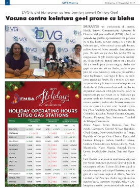 HOLIDAY OPERATING HOURS tral y Sur America: Argentina, Bolivia, Brazil,